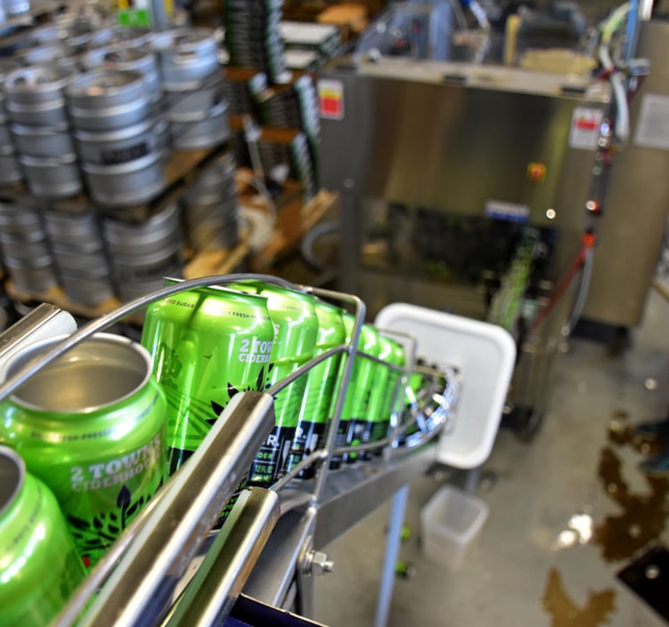 Finished cider is packaged on site into bottles, cans, and kegs so it is ready for tasting rooms, bars, shops, and backyard fridges.